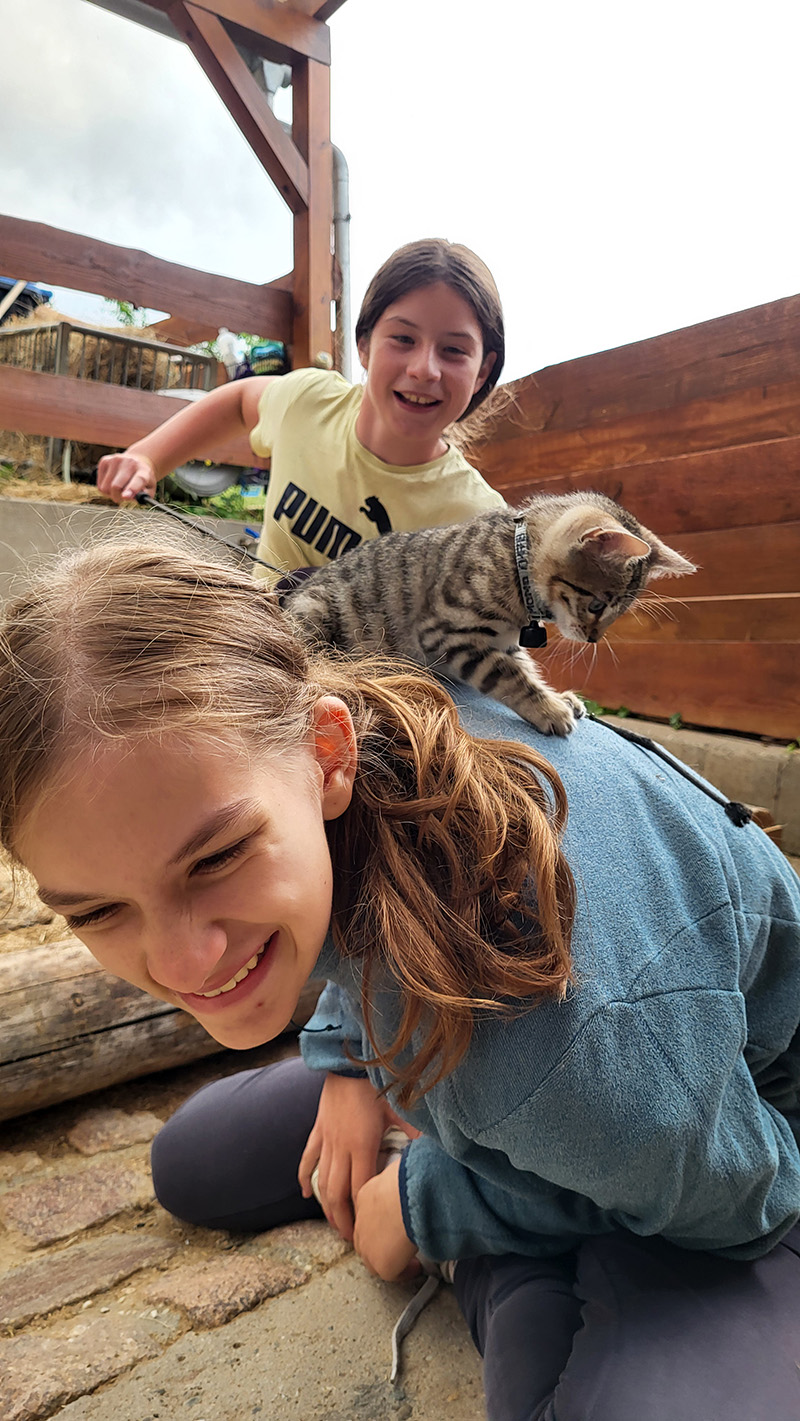 Katze auf Pferderücken