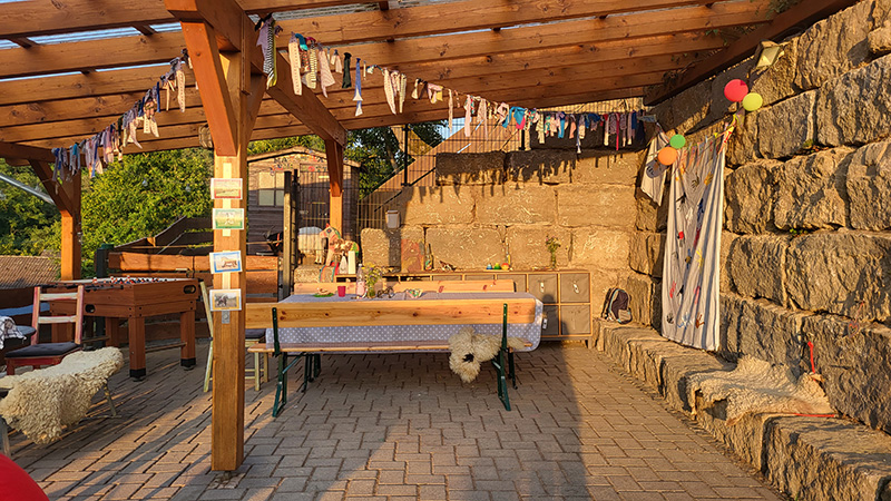 überdachten Außenbereich mit gepflastertem Boden