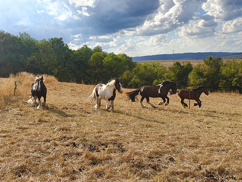 Vier gescheckte Pferde Nanuk, Nscho-Tschi, Willi und Navajo