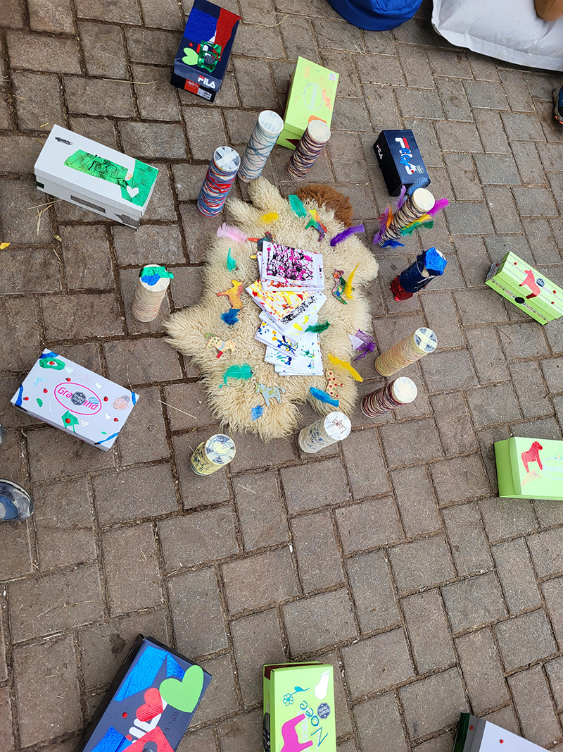 kreative Bastelecke mit Papier Pferden