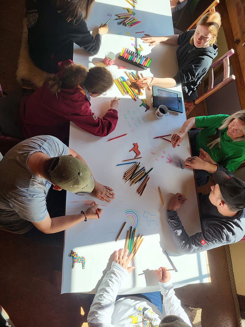 Gruppentisch mit kreativer Gemeinschaft
