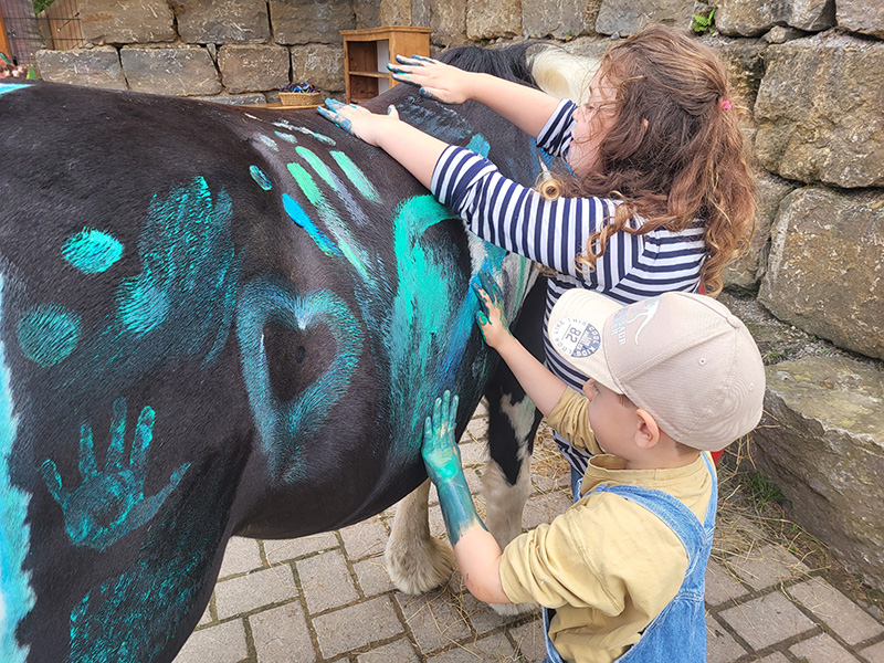 Pferdehintern mit bunten Fingerabdrücken